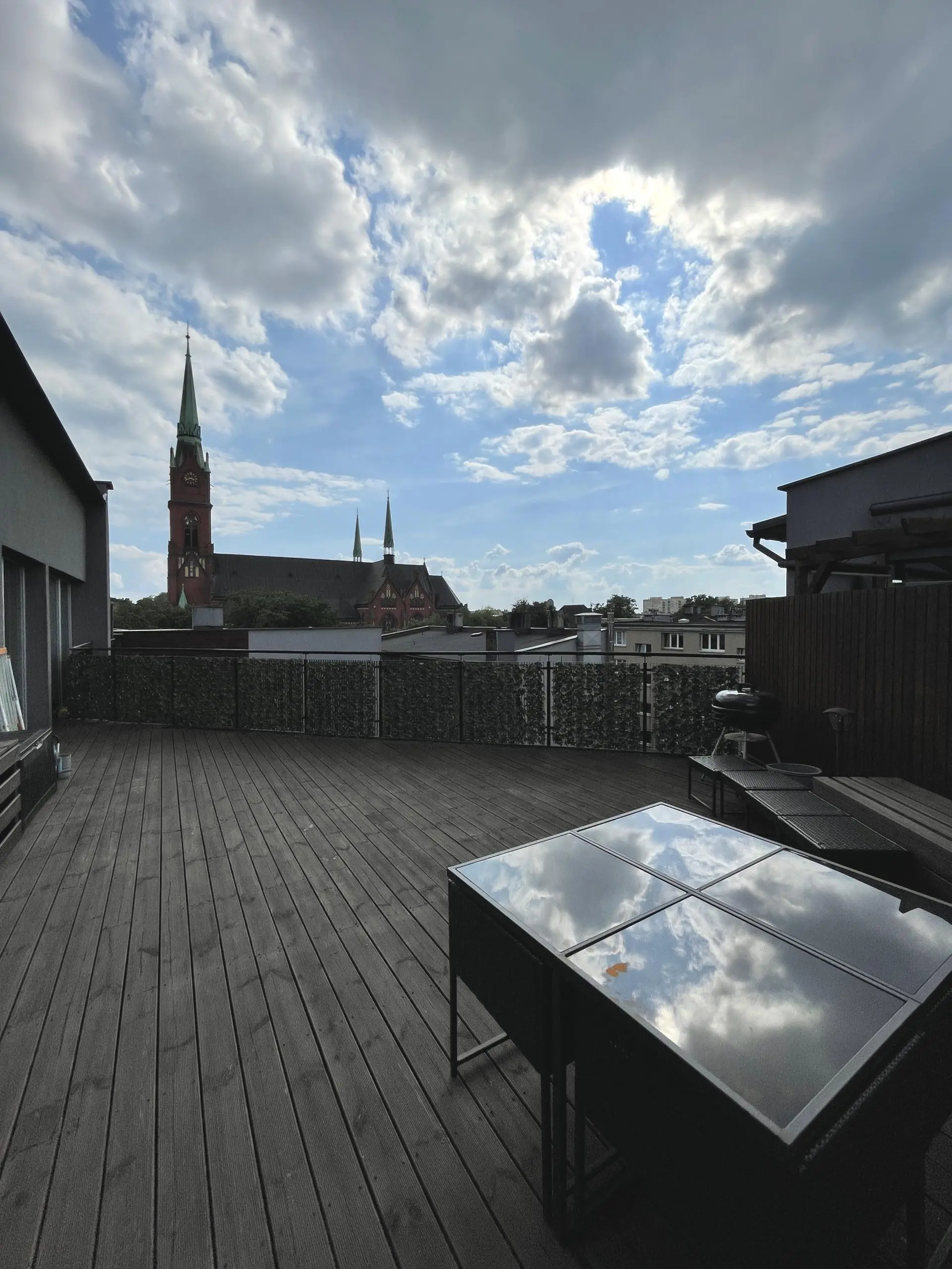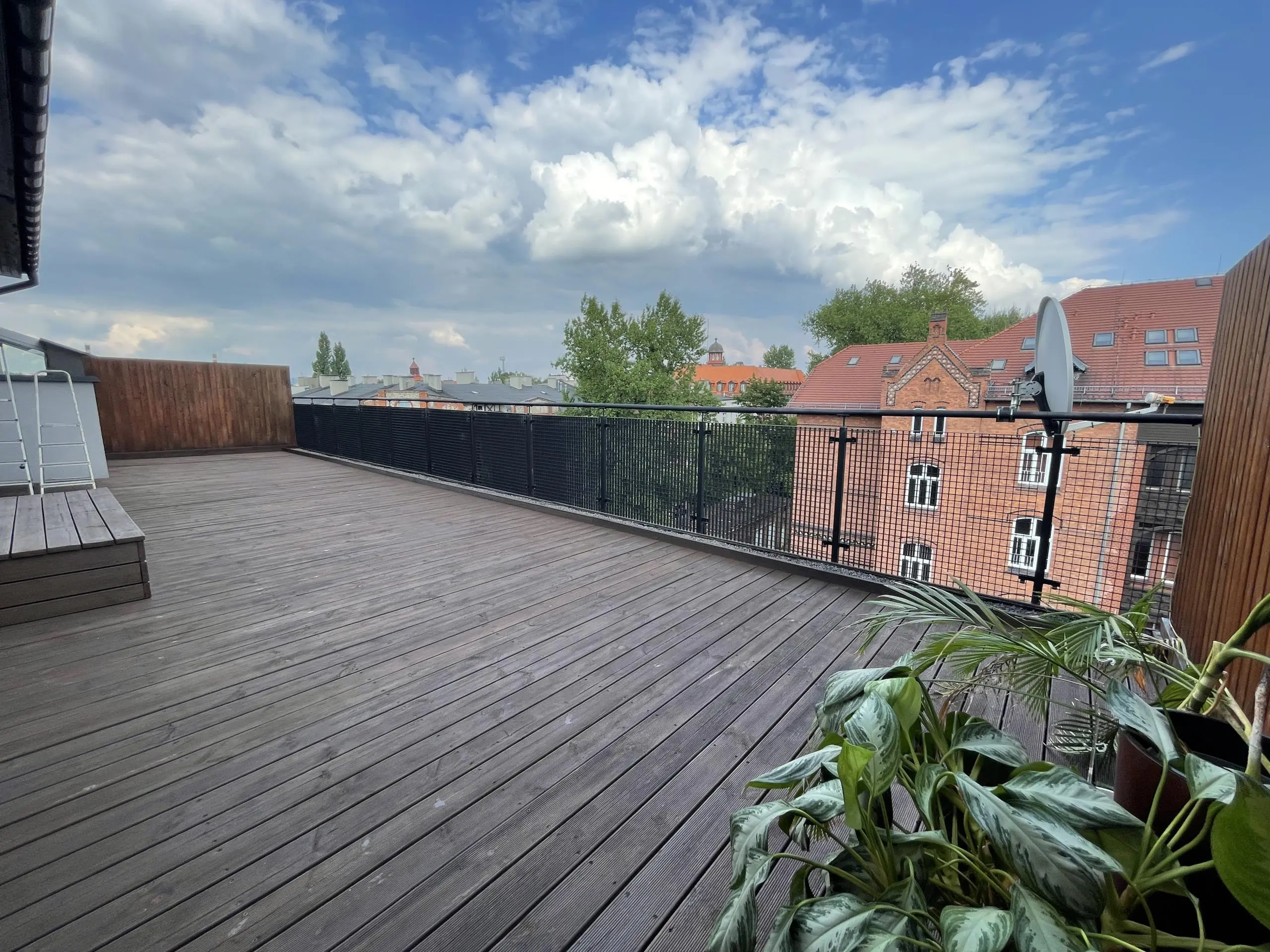 Jedyny taki apartament na Śląsku! Nowocześnie zaaranżowany Penthouse z dwoma tarasami o łącznej powierzchni 80m2. Mieszkanie o powierzchni 106,25m2, dwupoziomowe. Ciekawy rozkład pomieszczeń: wchodzimy do mieszkania na kondygnacji 4 na której mamy hol, łazienkę i gabinet. Nowoczesnym schodami przechodzimy na drugi poziom mieszkania: przepiękny duży salon z tarasami, otwartą kuchnią, w drugiej części mamy sypialnie z garderobą, toaletę praktycznie podzielona z pralnią, pokój oraz duży salon kąpielowy. Mieszkanie właściciele wykańczali dla siebie w oparciu o projekt architekt wnętrz oraz w materiałach wysokiej jakości.