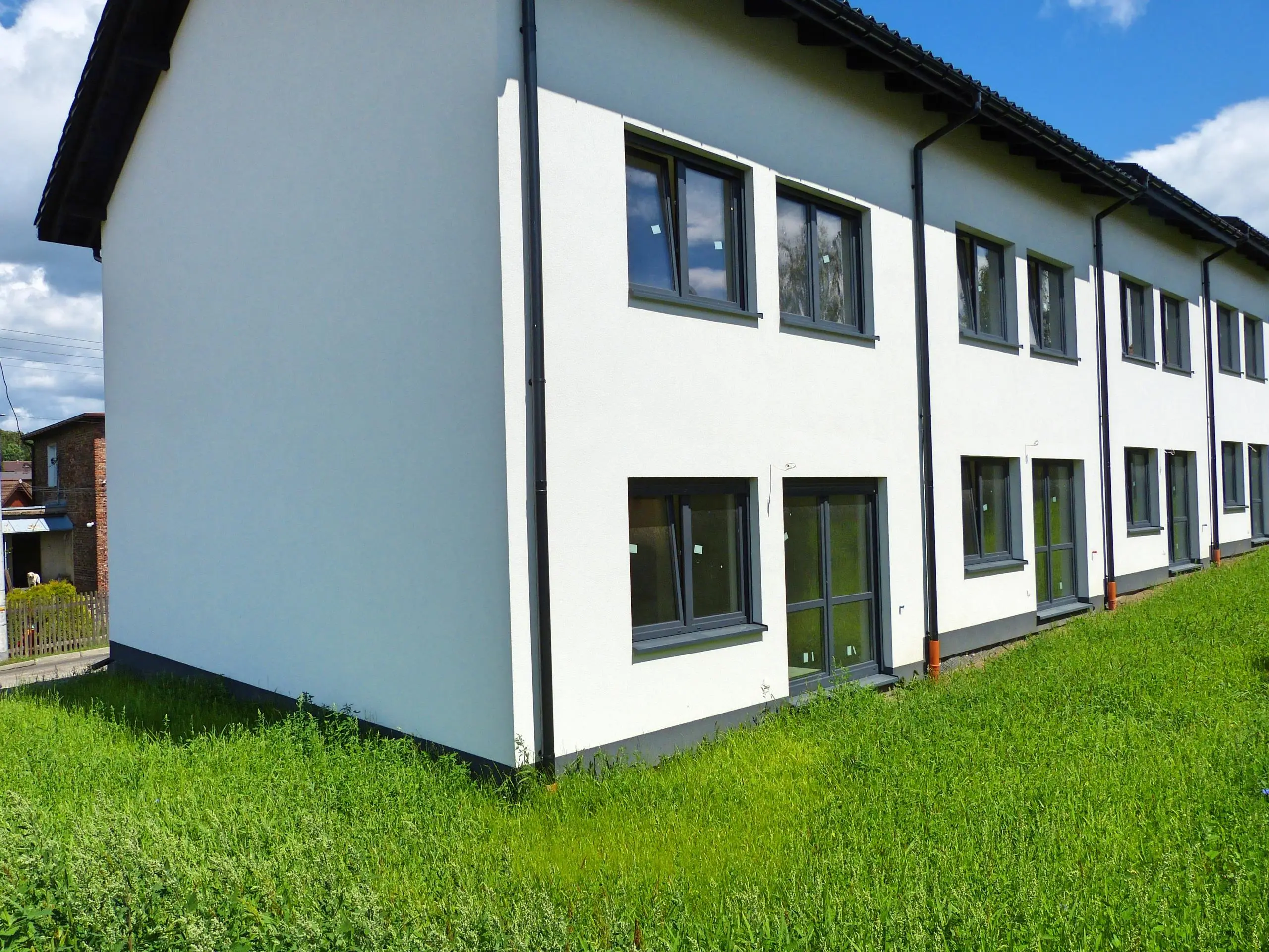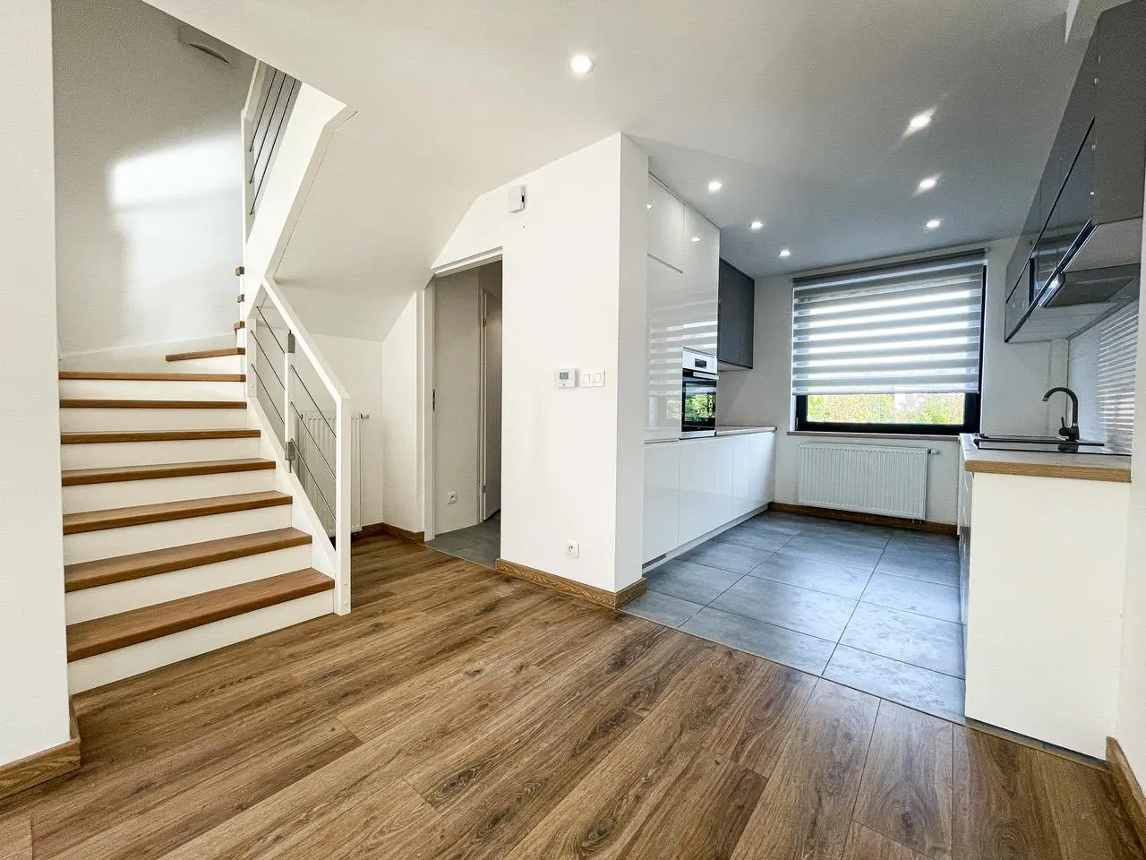 Funkcjonalny i estetyczny dom, w zabudowie szeregowej. Otwarta strefa dzienna na parterze to salon połączony z jadalnią oraz kuchnia. Dzięki widocznym z salonu schodom o atrakcyjnej geometrii, dobremu doświetleniu drzwiami tarasowymi, jest to strefa szczególnie atrakcyjna. Na piętrze urządzono dwa wygodne pokoje, łazienka z wanną i natryskiem oraz pralnia. Dodatkowo wysokie poddasze z pokojem i łazienką.