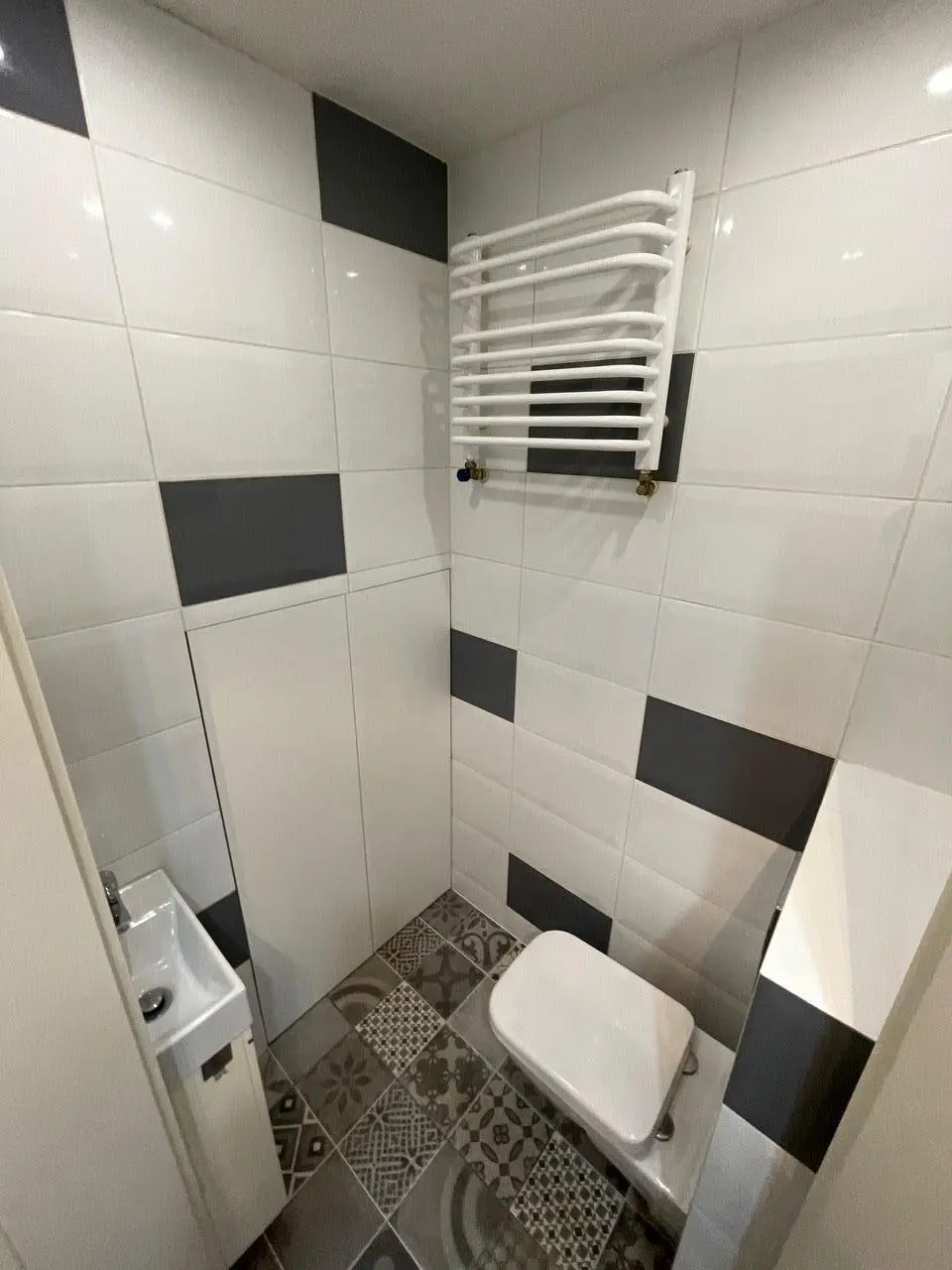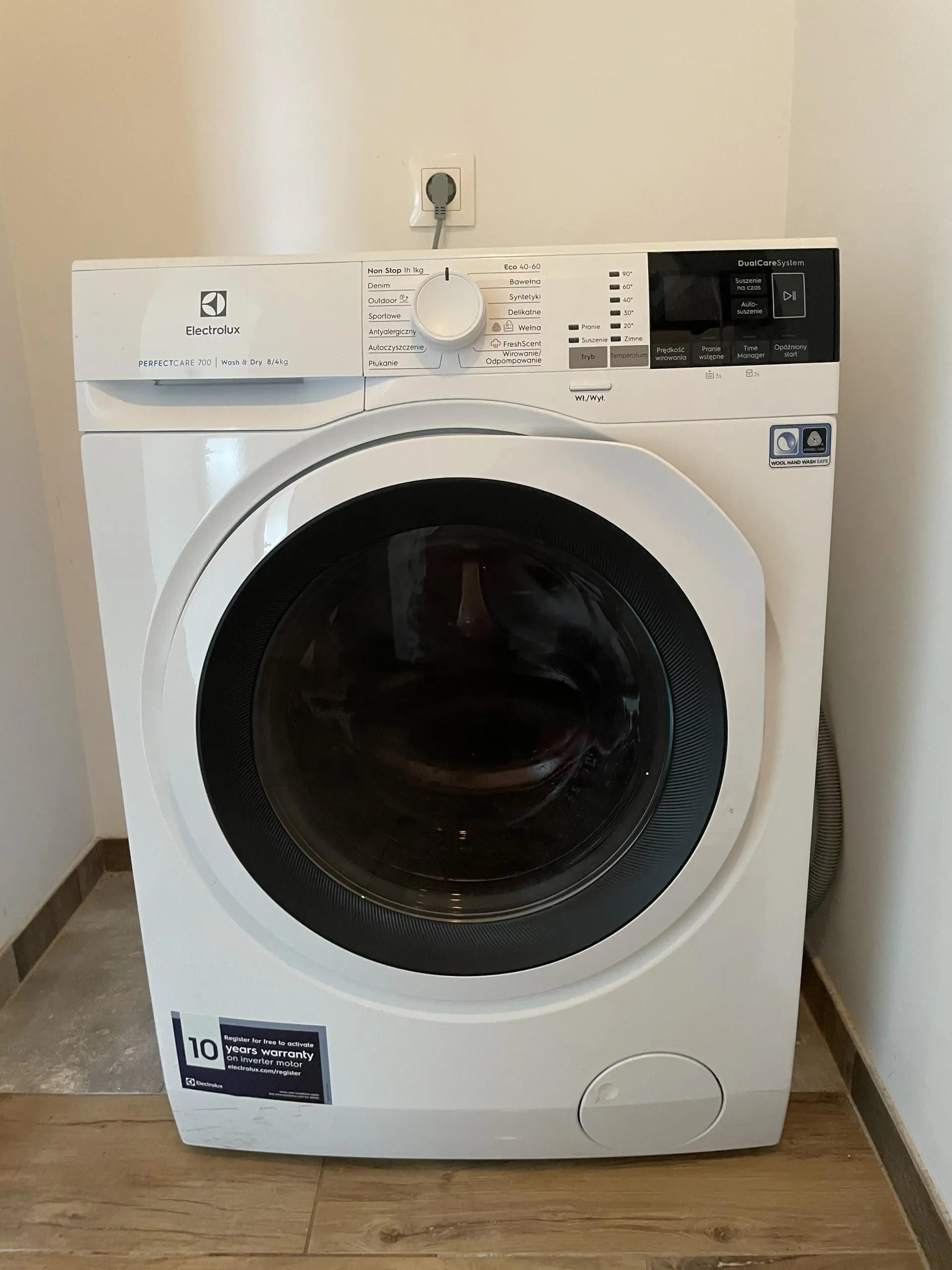Dom z zabudowanymi szafami w pokojach, wyposażony w pralko suszarkę bez mebli wolnostojących. .