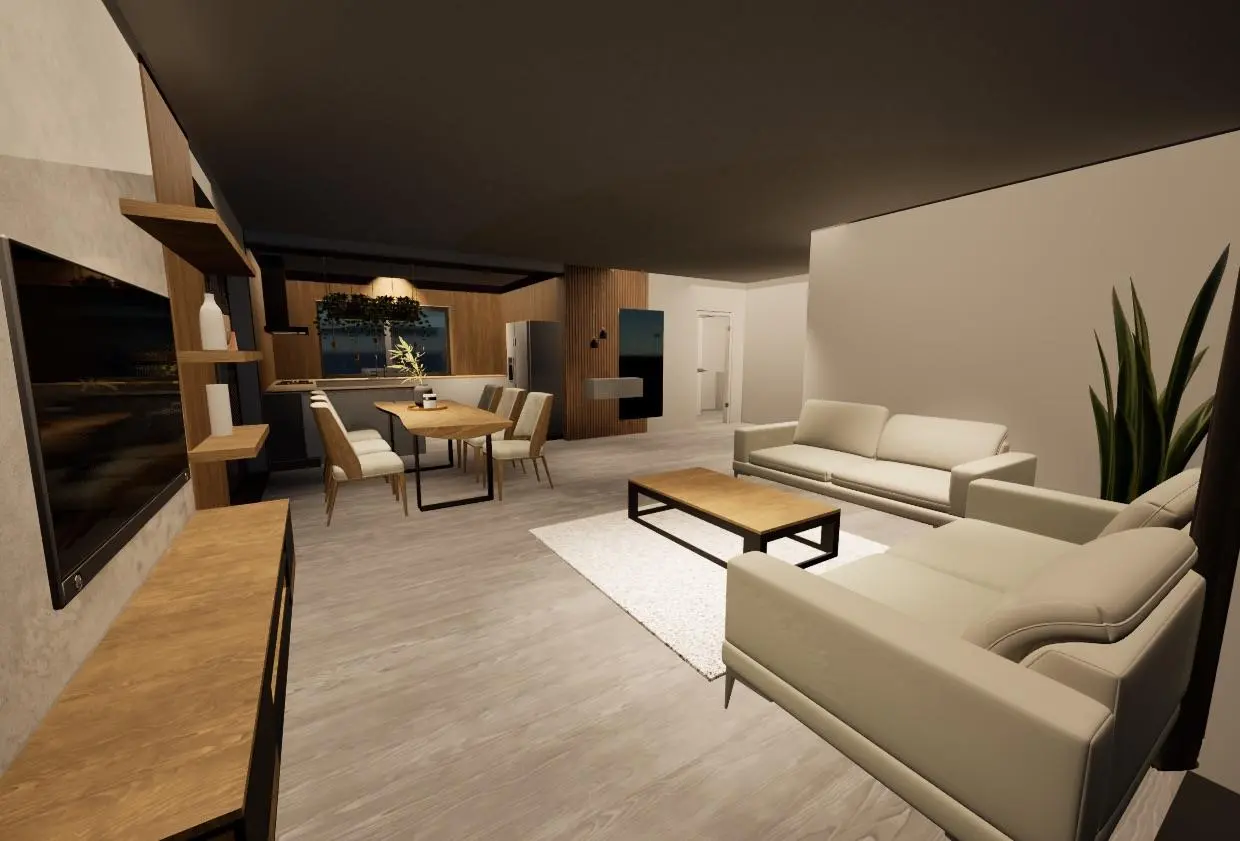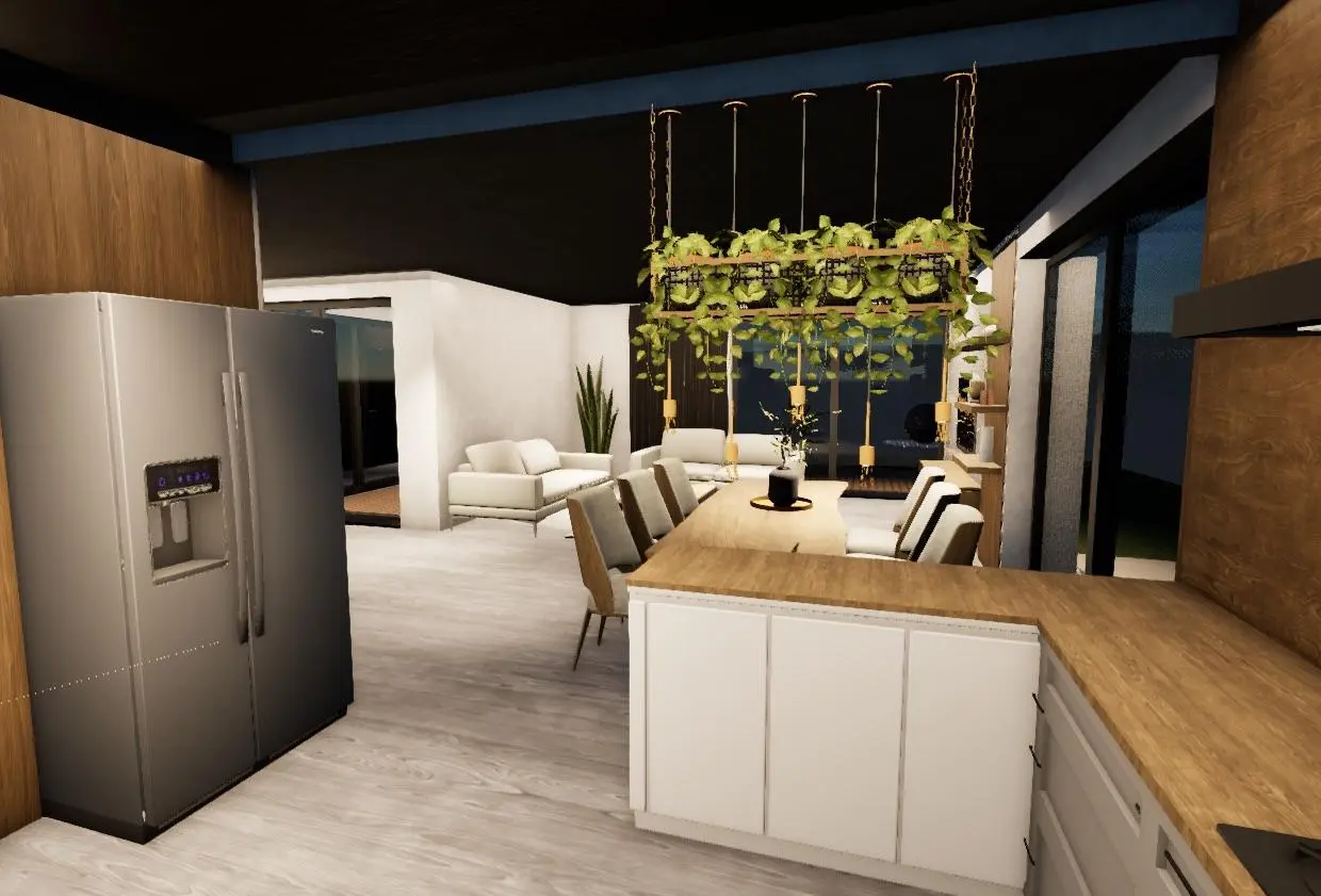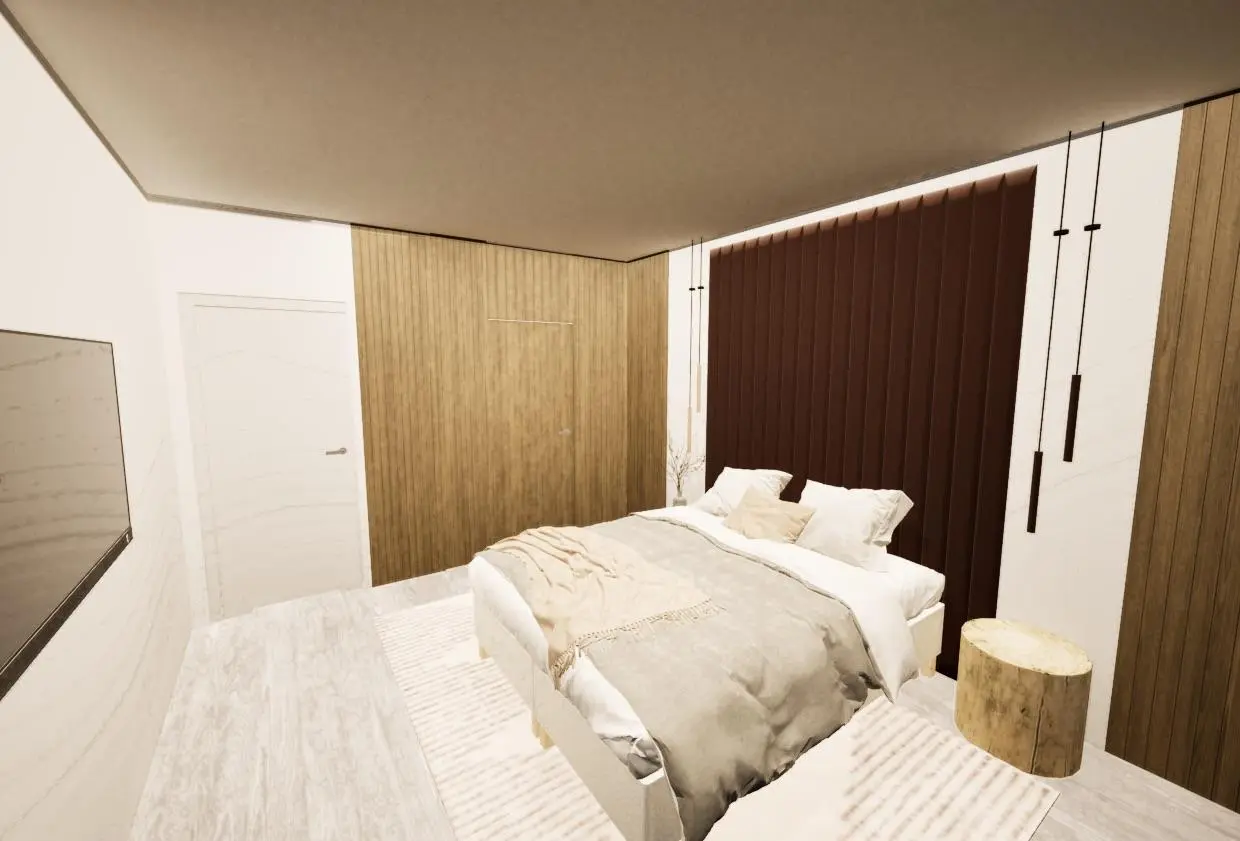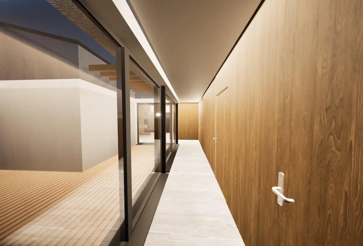 Układ domu:Strefa dzienna: przestronny salon z jadalnią i otwartą kuchnią, spiżarnia, toaleta, wyjście na taras i patioStrefa nocna: 3 sypialnie, w tym jedna z prywatną łazienką i garderobą, dodatkowa łazienkaStrefa gospodarcza: wiatrołap, pralnia z pomieszczeniem technicznym, dwustanowiskowy garaż.