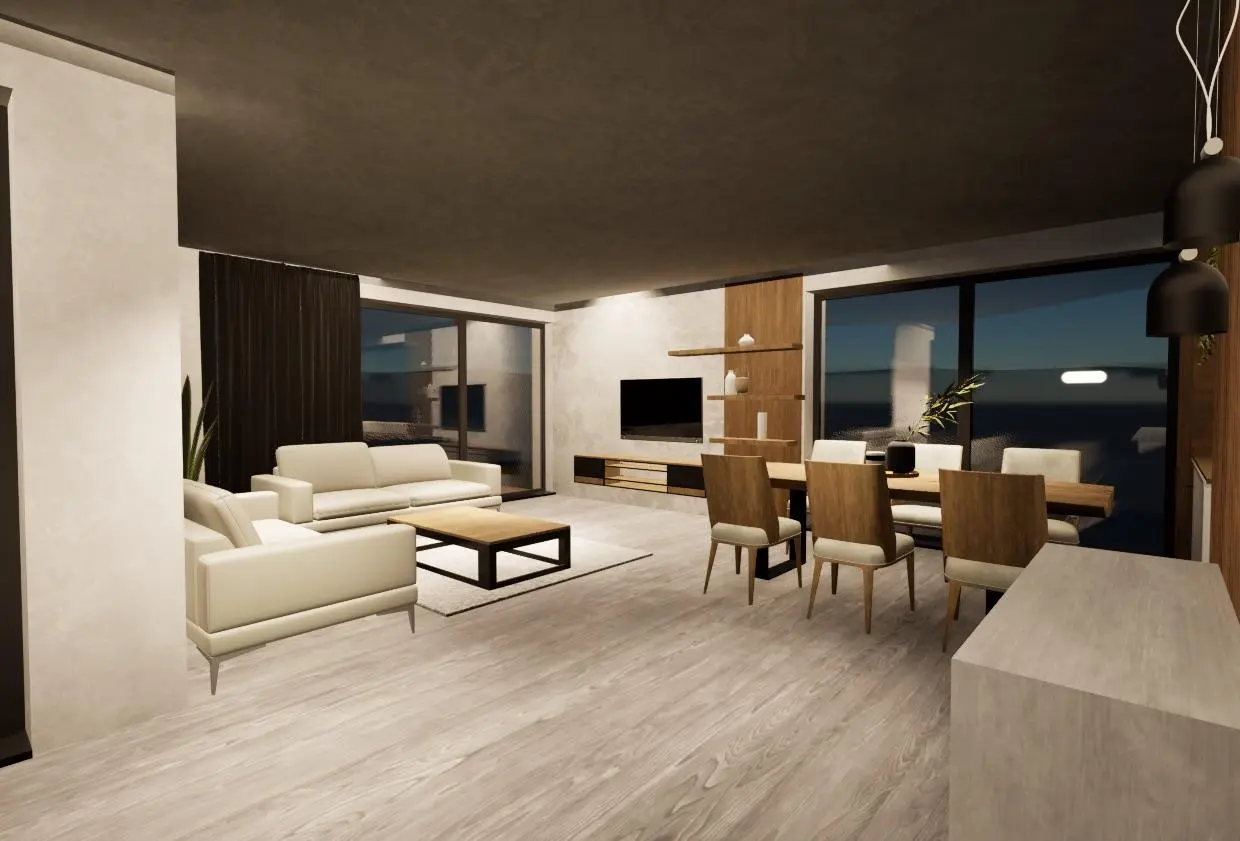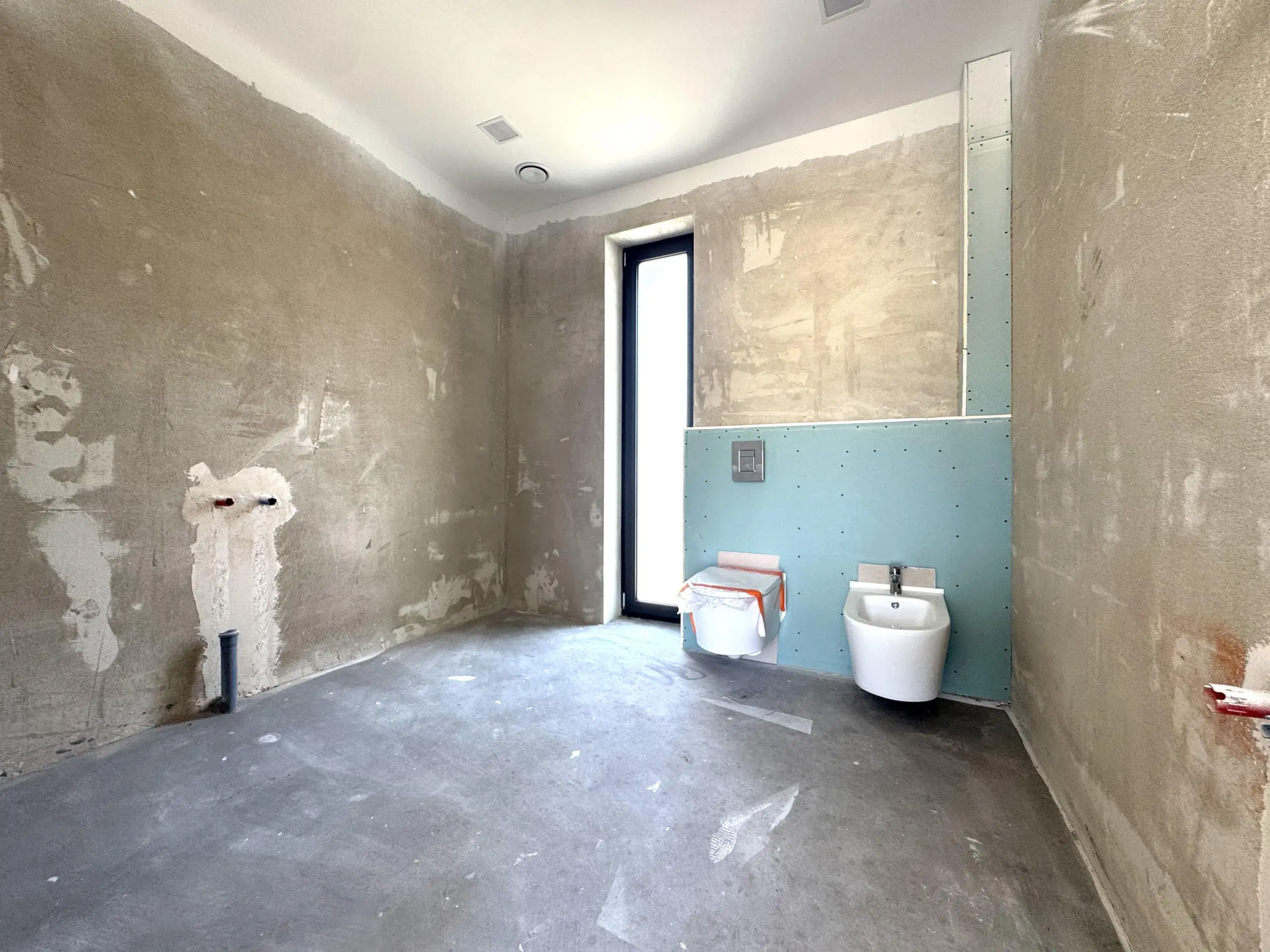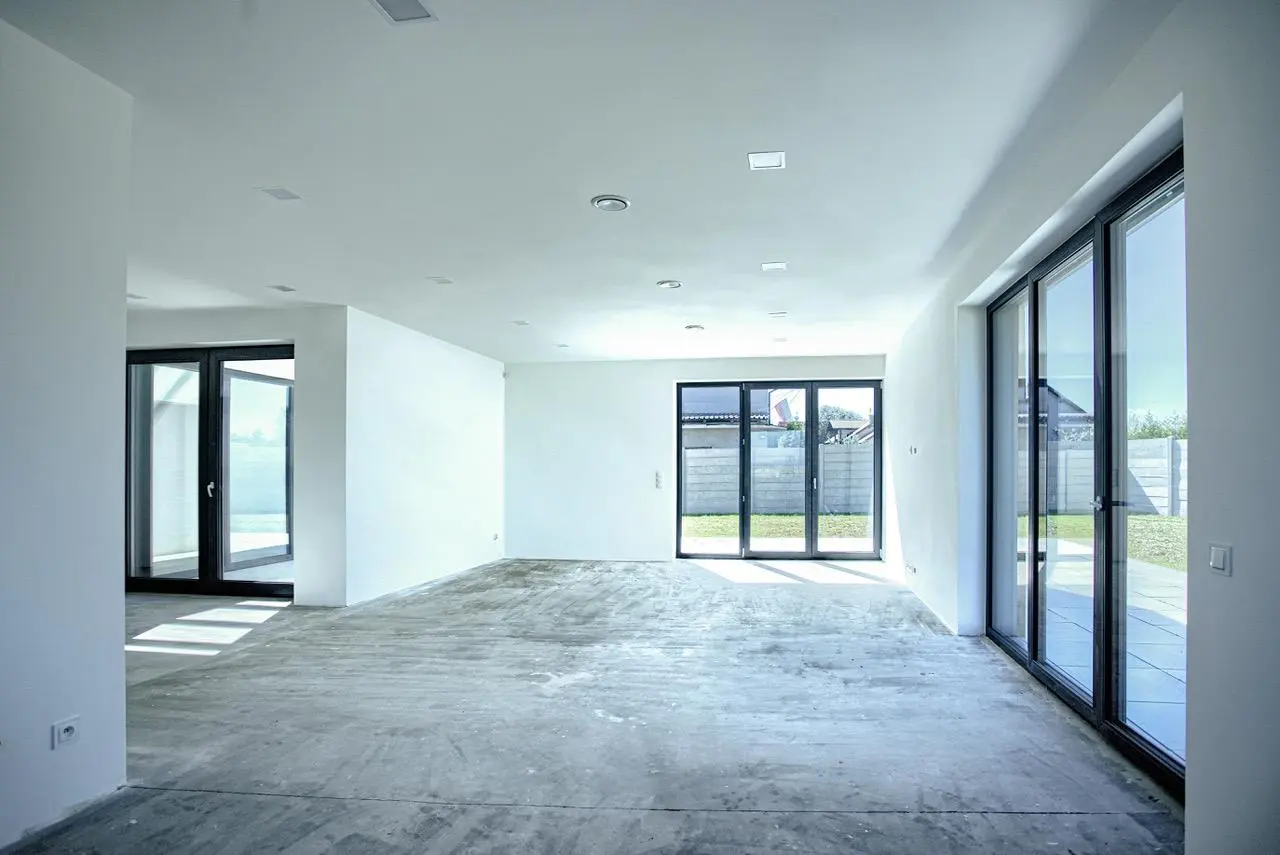 Do pełnego wykończenia pozostaje: ułożenie podłóg w części mieszkalnej, montaż drzwi wewnętrznych, położenie płytek w łazienkach.