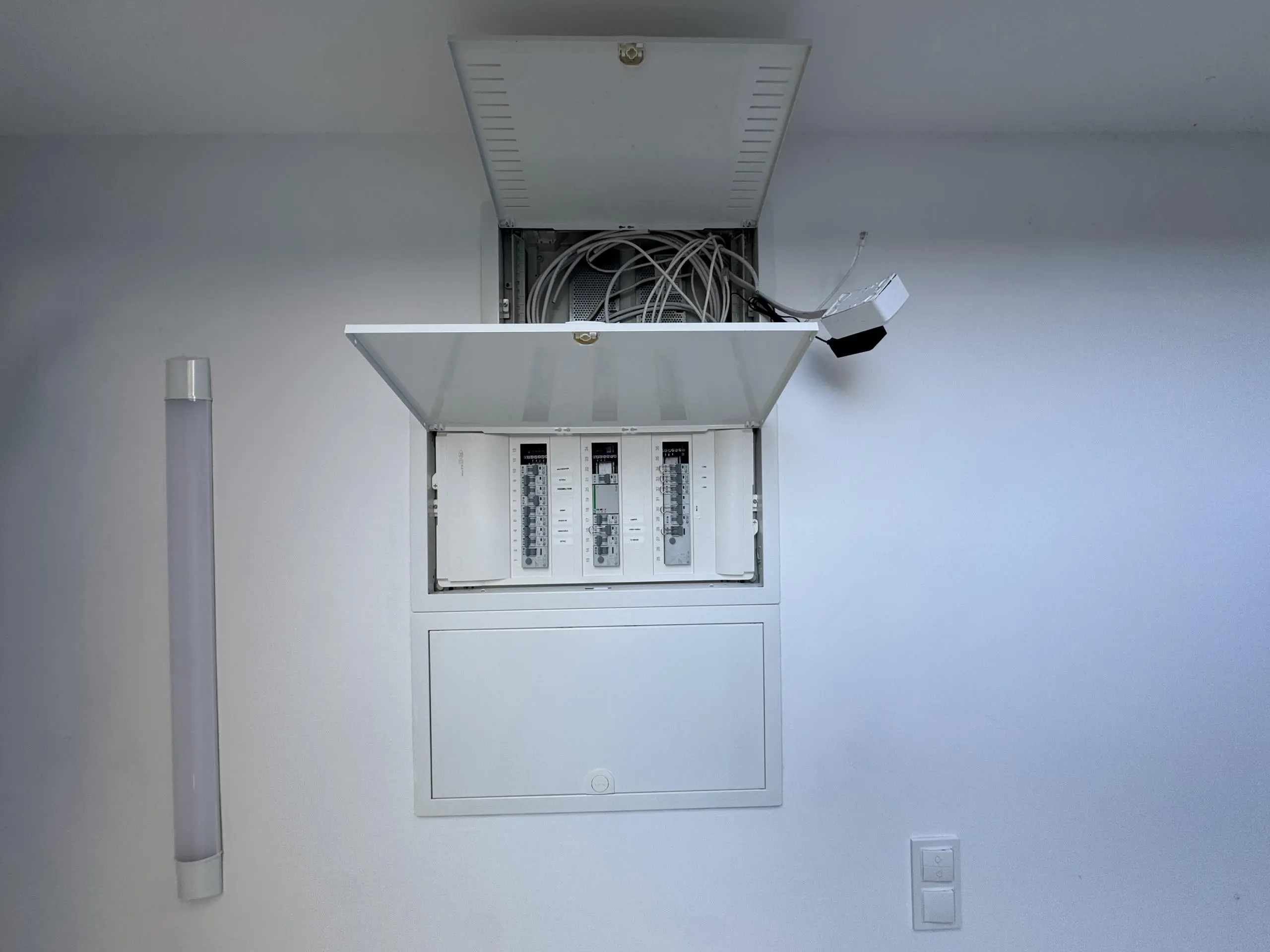 Ogrzewanie podłogowe w całym domu z indywidualnym sterowaniem temperatury w każdym pomieszczeniu.