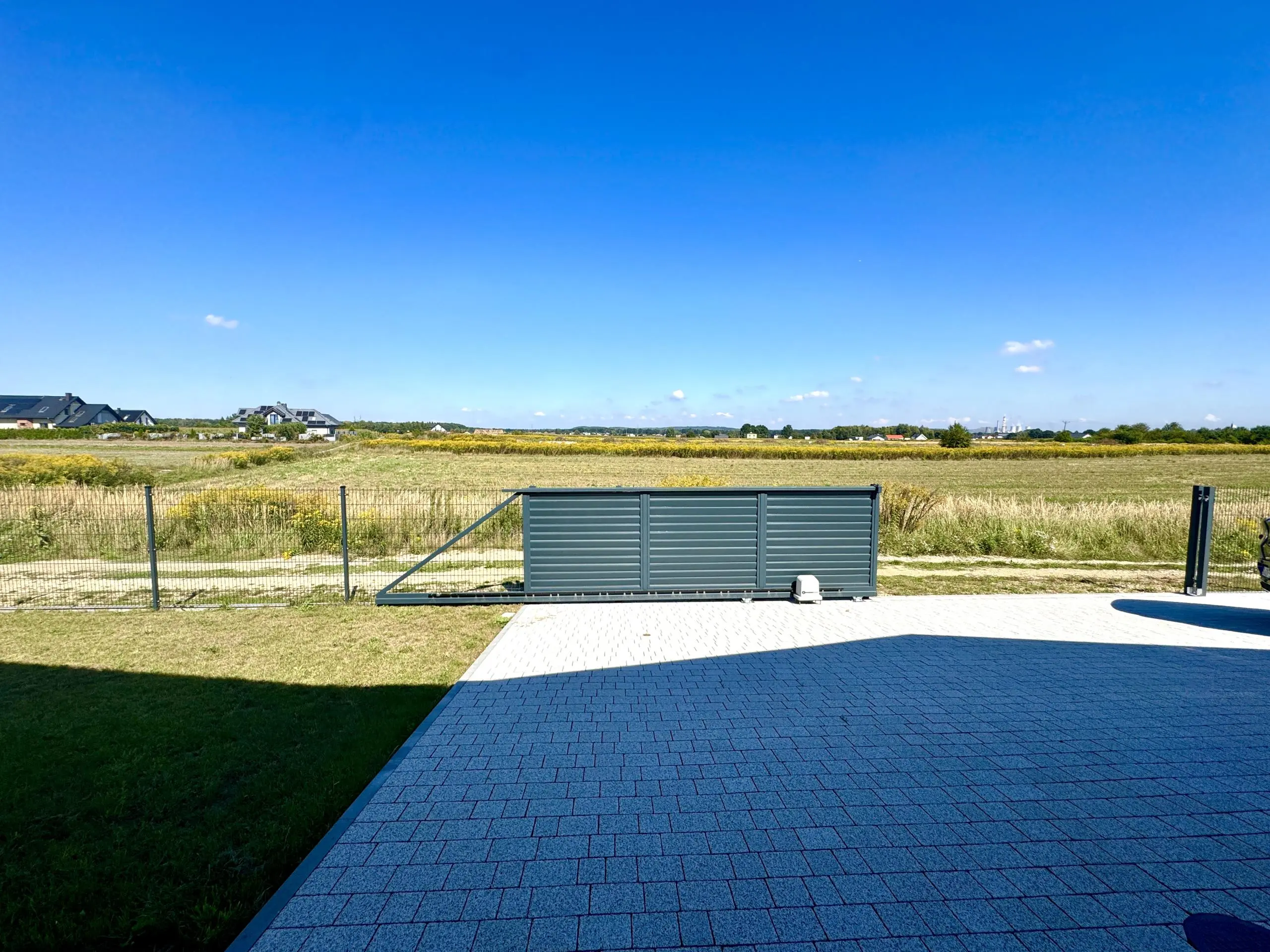 Brama wjazdowa o szerokości 5 m sterowana pilotem, furtka z wideodomofonem i automatycznym otwieraniem.